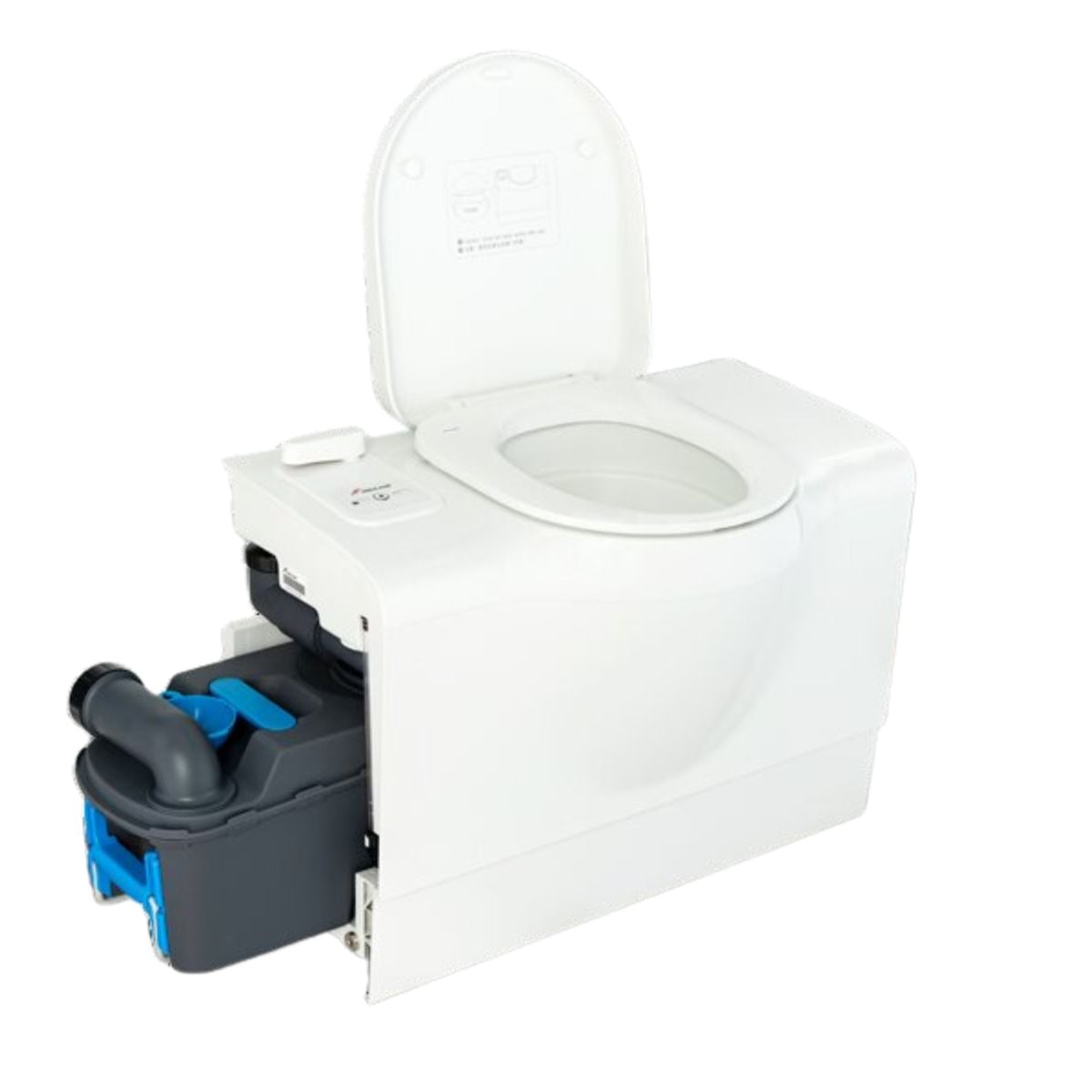 The electric flush system is powered by a built-in pump and supported by an independent 14L fresh water tank, meaning it does not rely on your main water system—ideal for off-grid use.