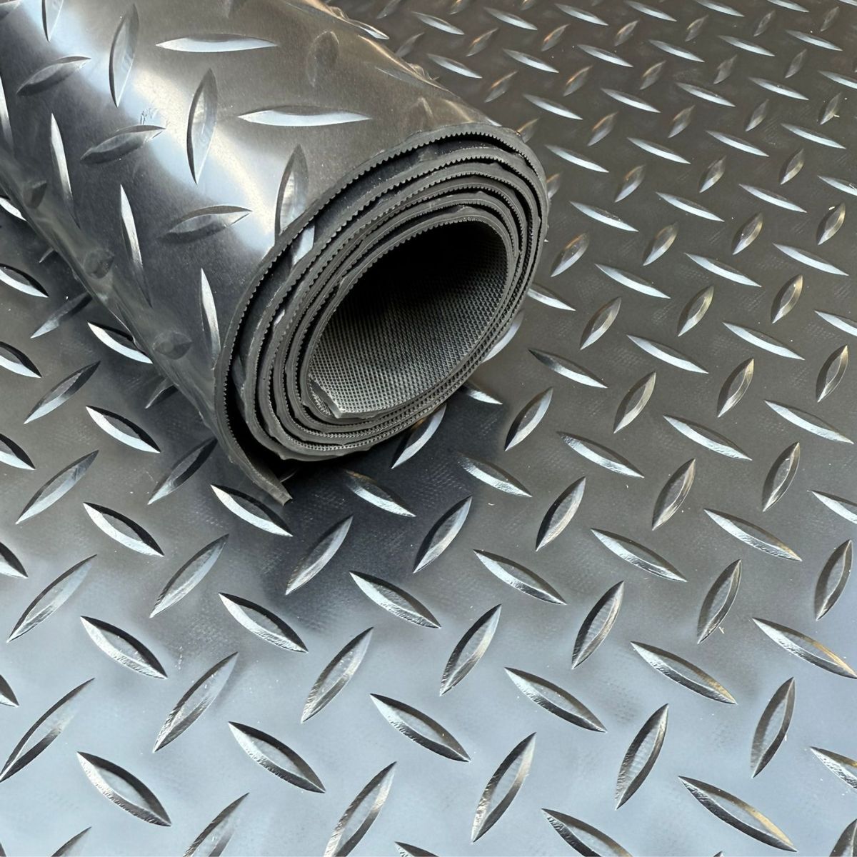 Crafted from premium 3mm thick PVC, this vinyl matting features a distinctive large diamond/checker plate pattern that delivers superior grip and traction, even in wet or high-traffic conditions. The raised diamond tread design not only provides exceptional safety but also adds a professional, industrial aesthetic to your space.